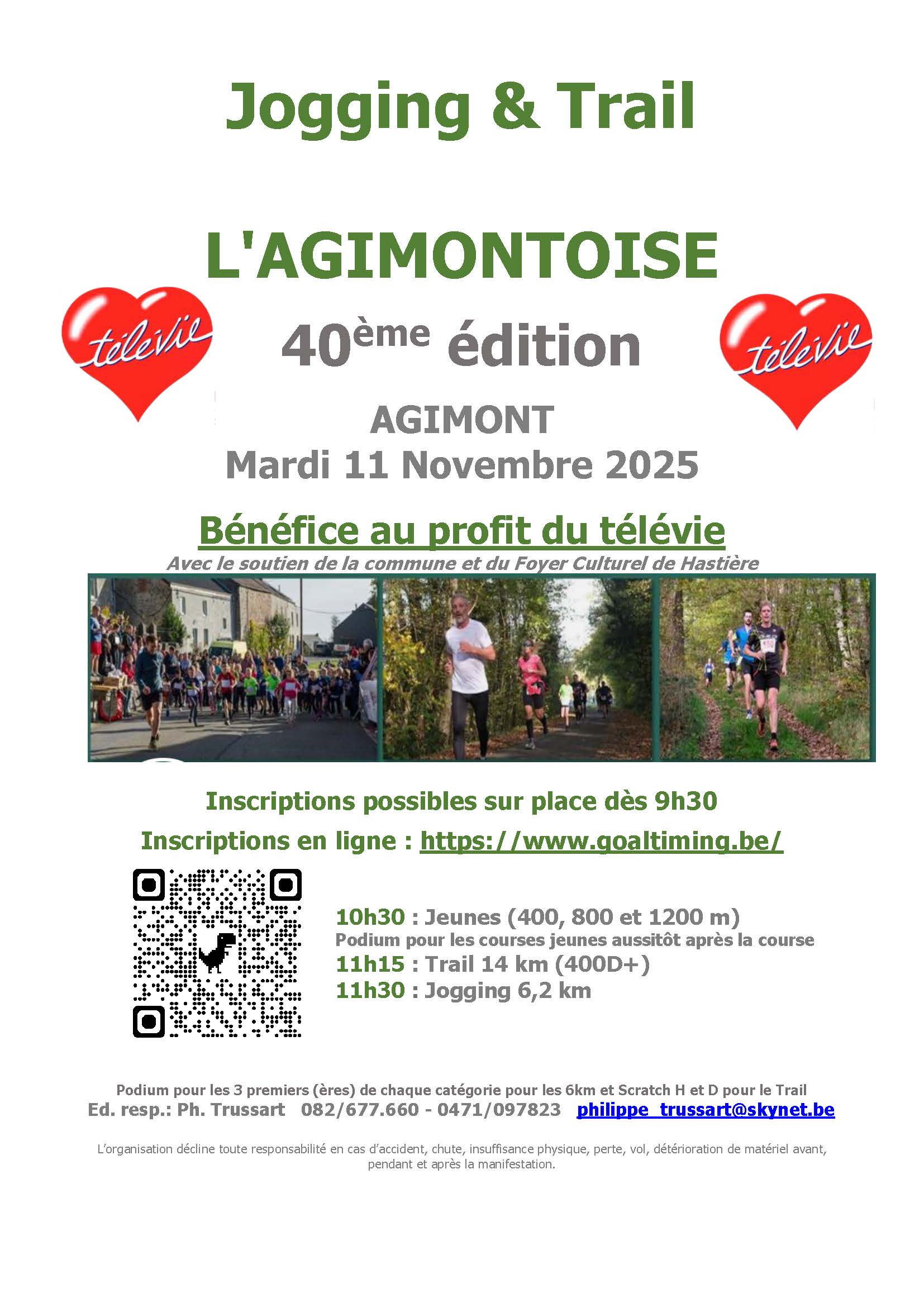 Jogging & Trail L’Agimontoise + Ajouter à mon Agenda Google + iCal / Outlook export Date Nov 11 2025 Heure 10h30 - 18h00 Lieu Agimont Catégorie Sport Organisateur L'Agimontoise Partagez cet événement RechercherRechercherArticles récentsCommentaires récentsAucun commentaire à afficher.