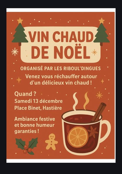 Vin chaud de Noël et concert des Monkey Balls + Ajouter à mon Agenda Google + iCal / Outlook export Date Déc 13 2025 Expiré! Heure 15h00 - 19h00 Lieu Place Emile Binet - Hastière-Lavaux, Place Emile Binet, 1, Hastière-Lavaux, 5540, Belgique Organisateur Les Riboul'dingues Partagez cet événement RechercherRechercherArticles récentsCommentaires récentsAucun commentaire à afficher.